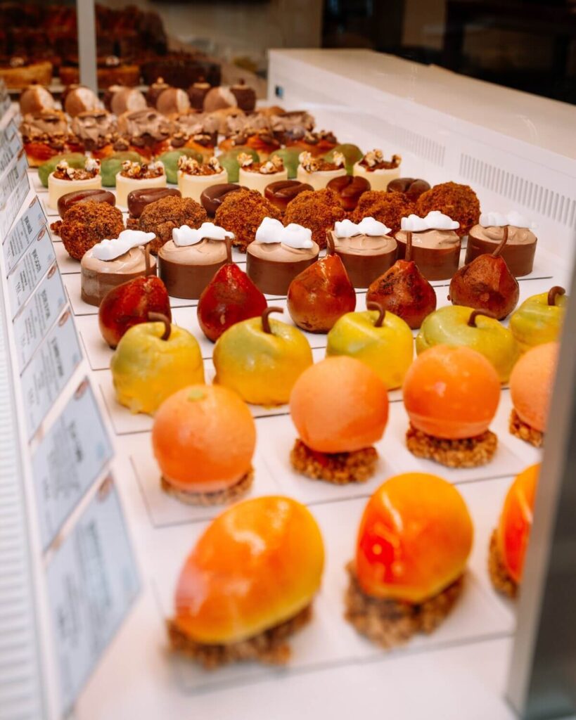 Ce nouvel espace propose une offre complète mêlant pâtisserie, chocolaterie, salon de thé, ainsi qu’une courte sélection de pains, rappelant l’ancrage boulanger du couple à l’origine du projet.