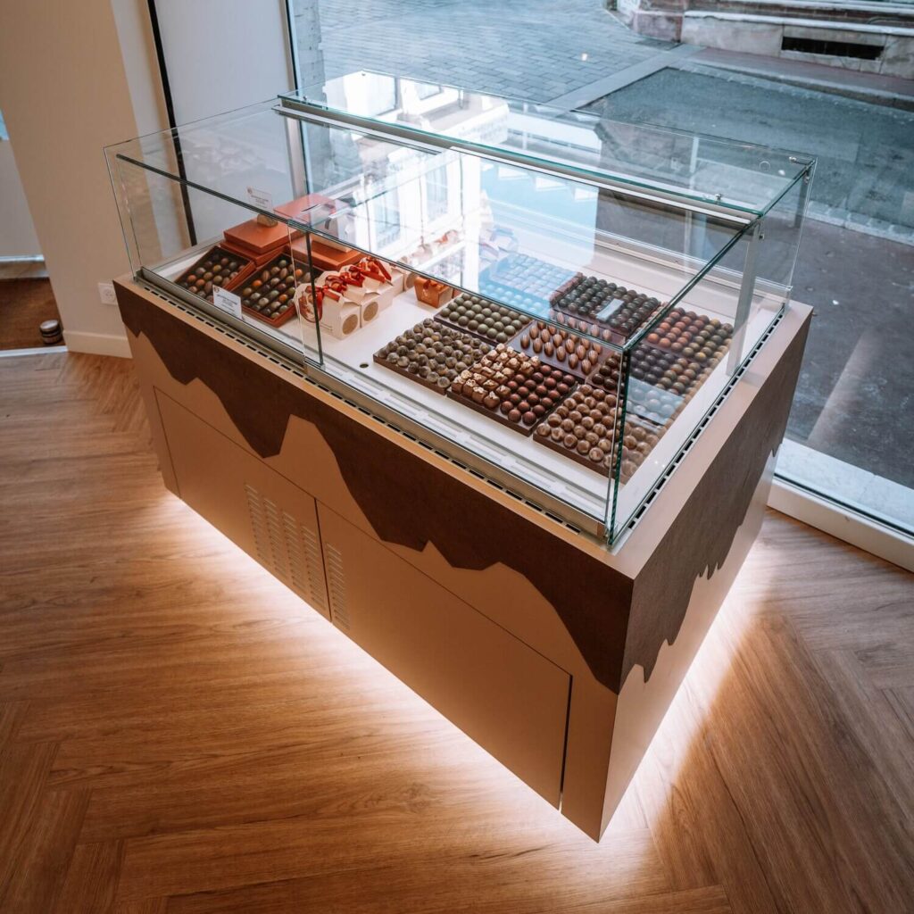Ces vitrines ont été conçues pour répondre aux exigences de conservation, de présentation et de durabilité, tout en s’intégrant parfaitement au concept global du magasin.